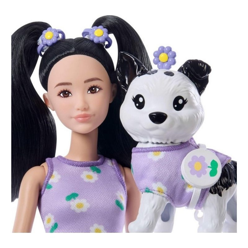 Barbie Kiskedvenc divatduó - Margaréta mintás lila ruhás divatbaba és kutyus figura